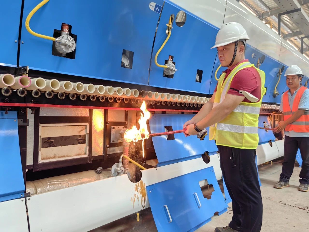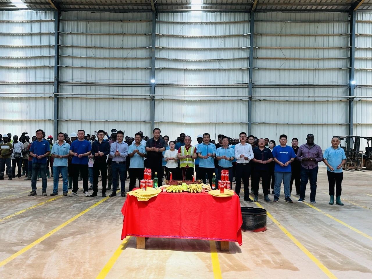 项目自2022年底启动前期筹备工作,期间克服超长雨季对施工的影响等重重困难,先于2024年6月15日上午11点18分实现K2线窑炉点火,随后经过紧张的调试工作,最终在30号成功出砖、实现投产。点火仪式当天,特福喀麦隆陶瓷总经理王浩然、厂长张顺、新项目筹建副厂长孙慎磊、新项目筹建中心项目主管陈刚,森大集团喀麦隆分公司总经理李广漠、喀麦隆卫品厂厂长尉京辉,以及特福喀麦隆陶瓷部分员工代表出席了活动。